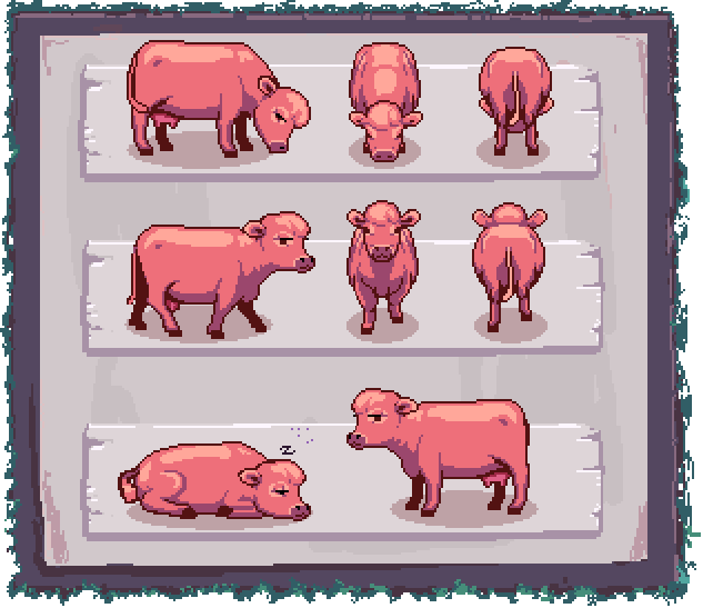 - Color variants for cat, chicken and cow