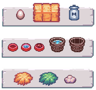 - Egg, milk tank, wool and hay sprites