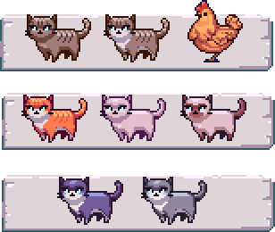 New! Update 1.1: Seven more colors for cats and a brown chicken!